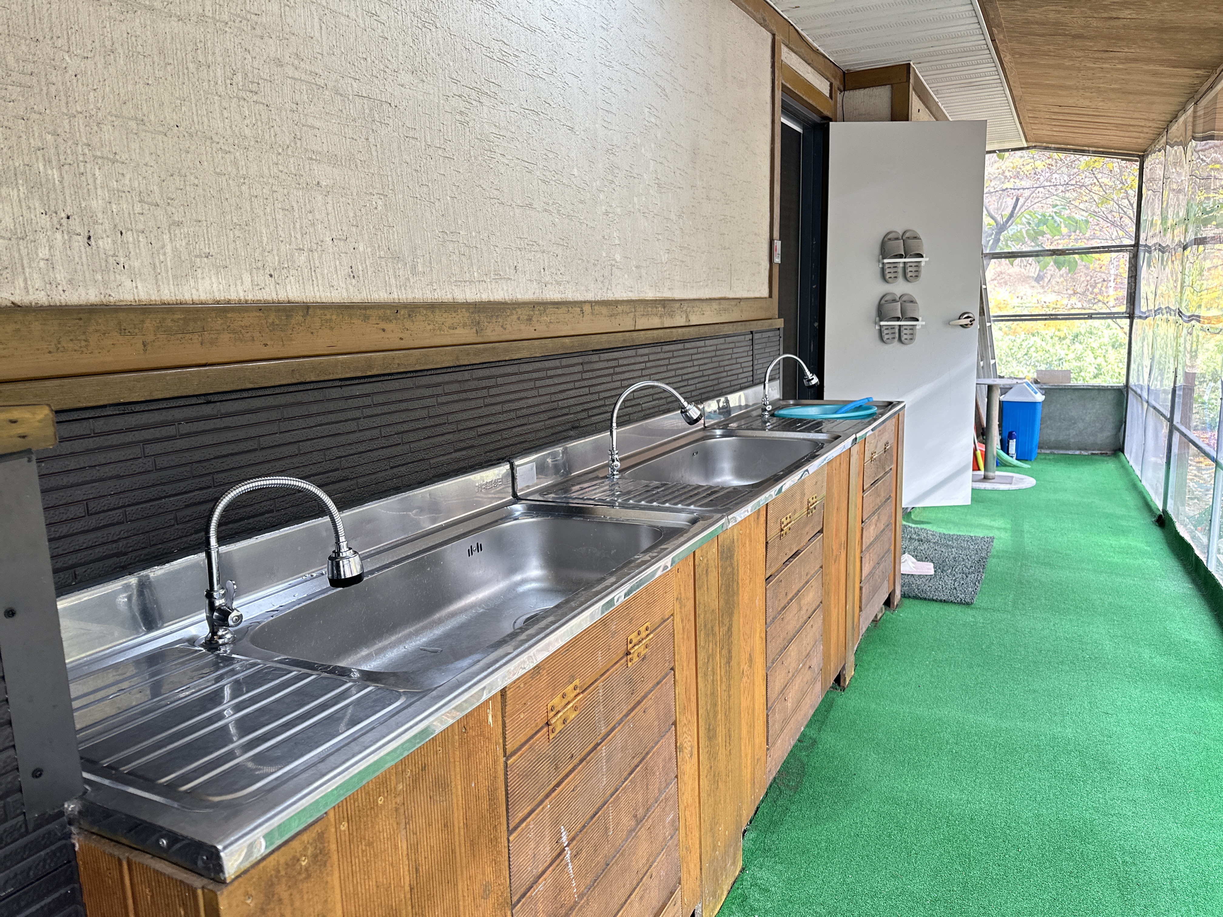 관리동 옆으로 별도의 건물에 개수대, 화장실, 샤워실이 있는데 겨울철에는 그곳을 이용하면 됩니다.