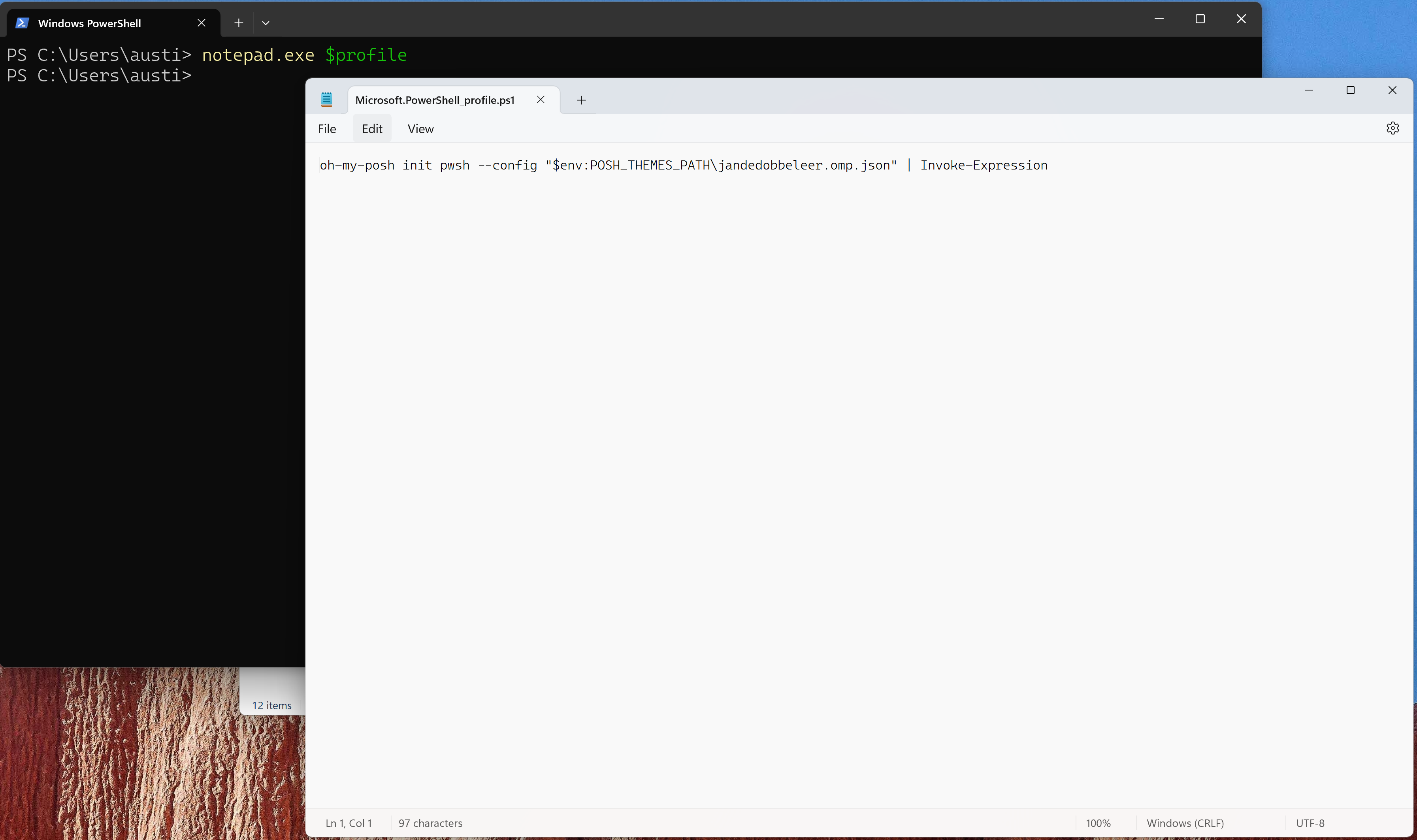 oh-my-posh init pwsh --config "$env:POSH_THEMES_PATH\jandedobbeleer.omp.json" | Invoke-Expression