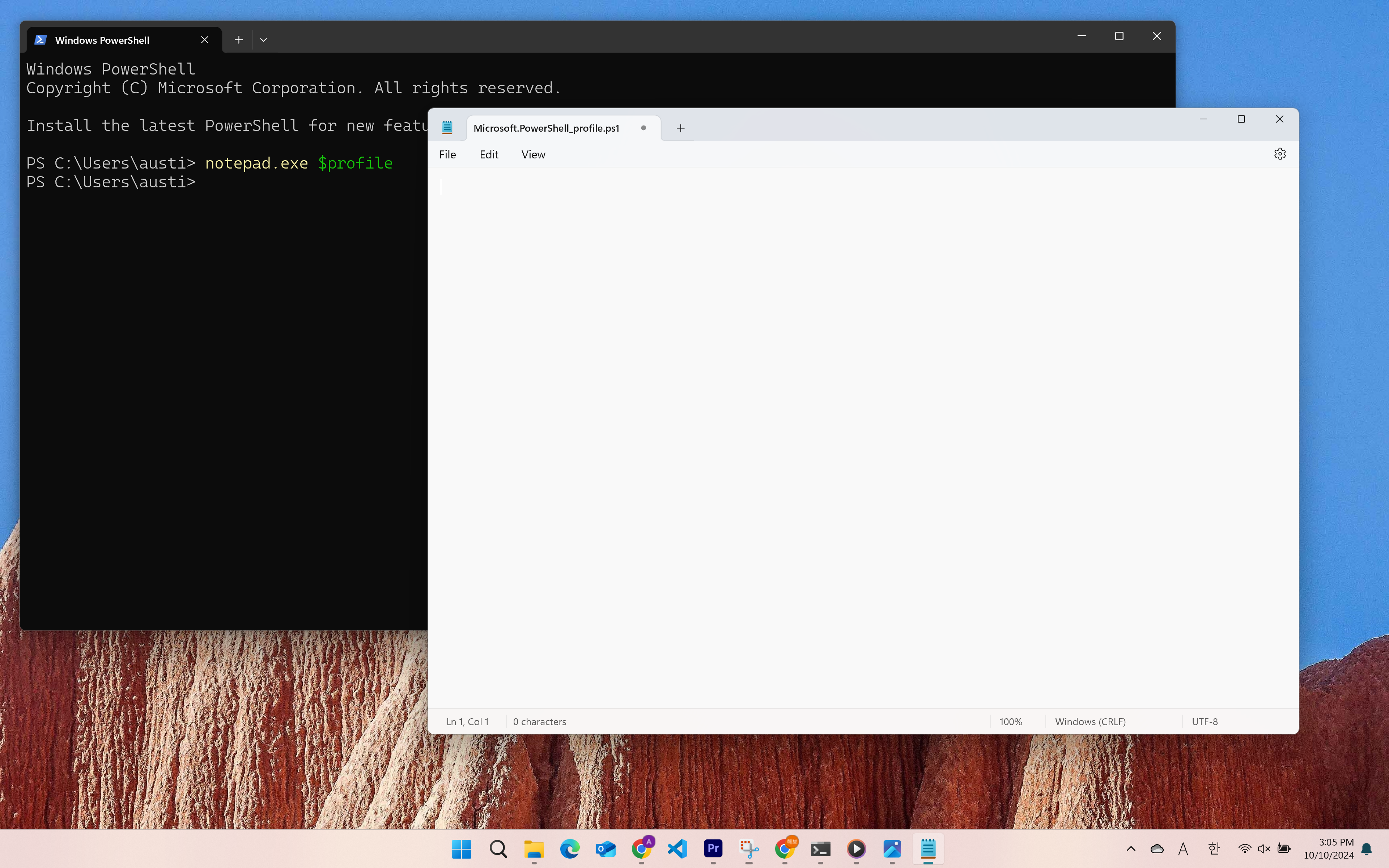 3. Powershell기본 Profile을 Open합니다.